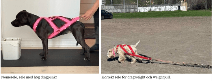 När man tränar dragweight/weightpull så använder man sig av en skräddarsydd sele som är utformad för just detta ändamål, en så kallad ”wp-sele”. Anledningen till att man inte ska använda sig utav